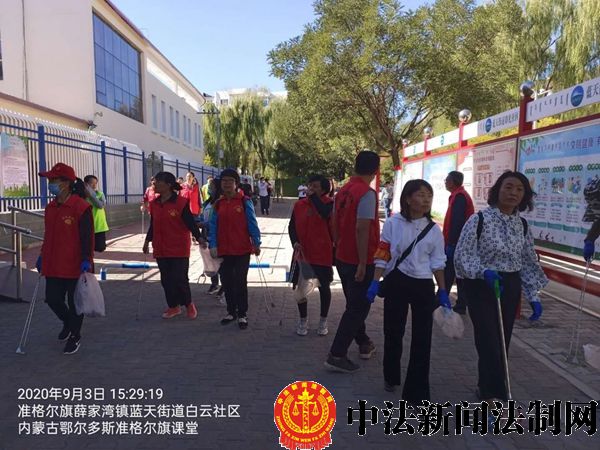 本网讯(王多兵)文明来自一点一滴,新风源起一言一行。 2020年9月3日,内蒙古鄂尔多斯准格尔旗课堂10名志愿者,继续来到准格尔旗薛家湾镇蓝天街道白云社区做义工,拾捡烟头、废旧塑料等垃圾,参加创建文明城市活动。